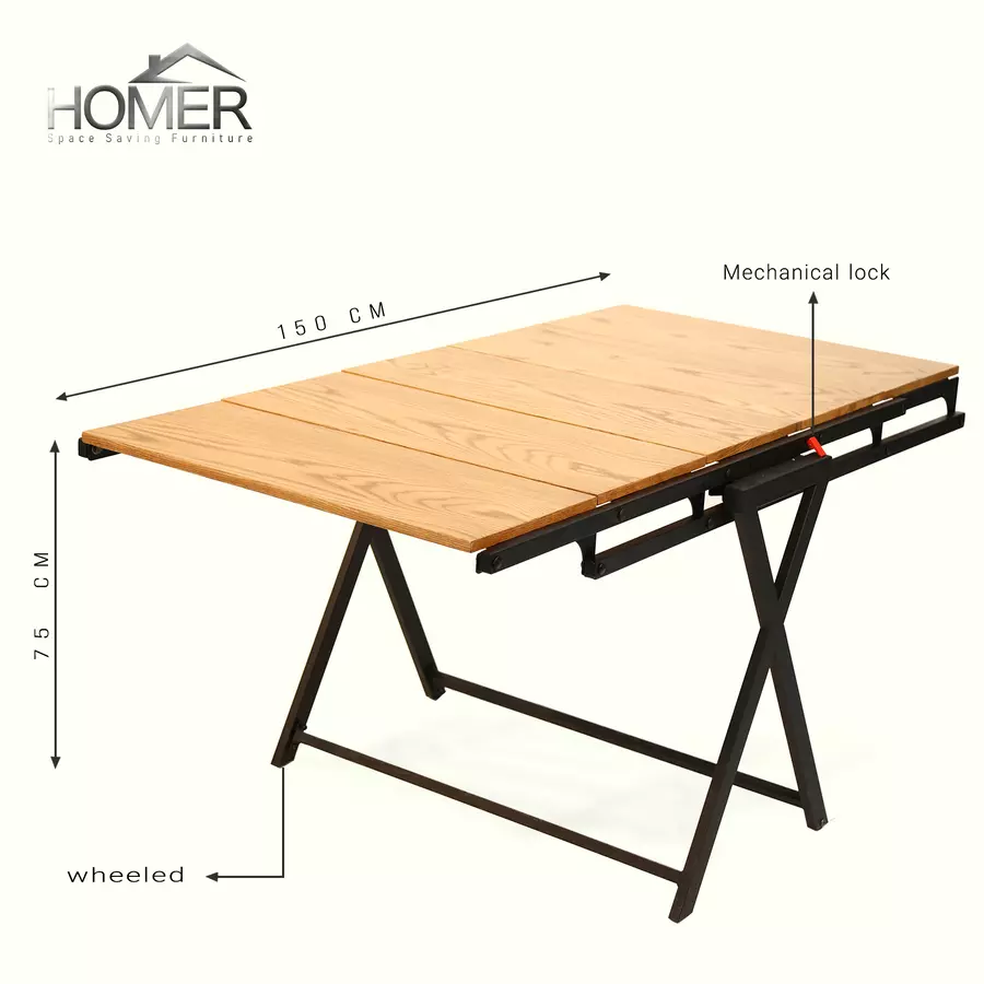 این طراحی هوشمندانه، یک شلف عالی به عنوان قفسه لوازم شما ایجاد میکند و باعث نظم دهی به اتاق شما میشود و با یک حرکت ساده به یک میز ناهارخوری با قابلیت میزبانی از 6 نفر تبدیل میشود.