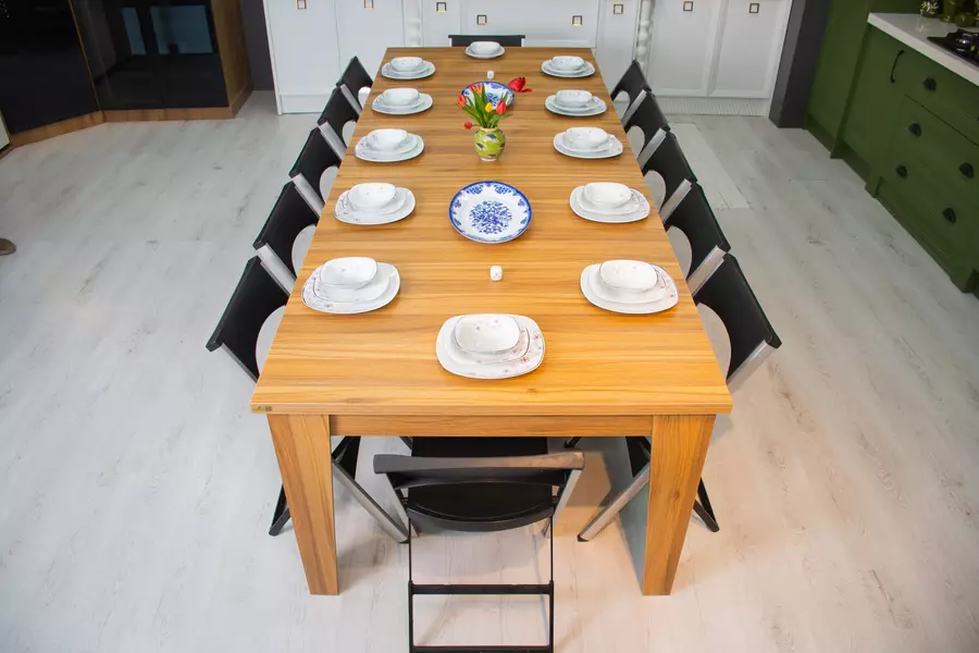 فضای خود را برای داشتن یک میز ناهارخوری محدود نکنید، هنگامی که به یک میز نیاز دارید  کافیست کنسول را باز کنید و صفحات را به کنسول اضافه کنید تا یک میز غذاخوری 12 نفره داشته باشید. حتی میتوانید اندازه میز را از 4 نفر تا 12 نفر تغییر دهید. میزی همراه با انبوهی از غذاها و نوشیدنی ها با اطمینان و محکم.